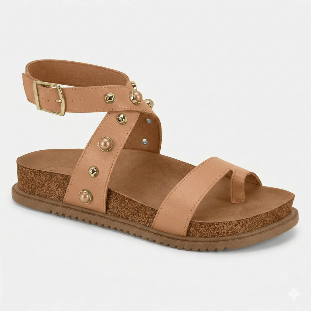 Sandália Feminina Beira Rio Papete Tratorada Aplicações Tachas Original
