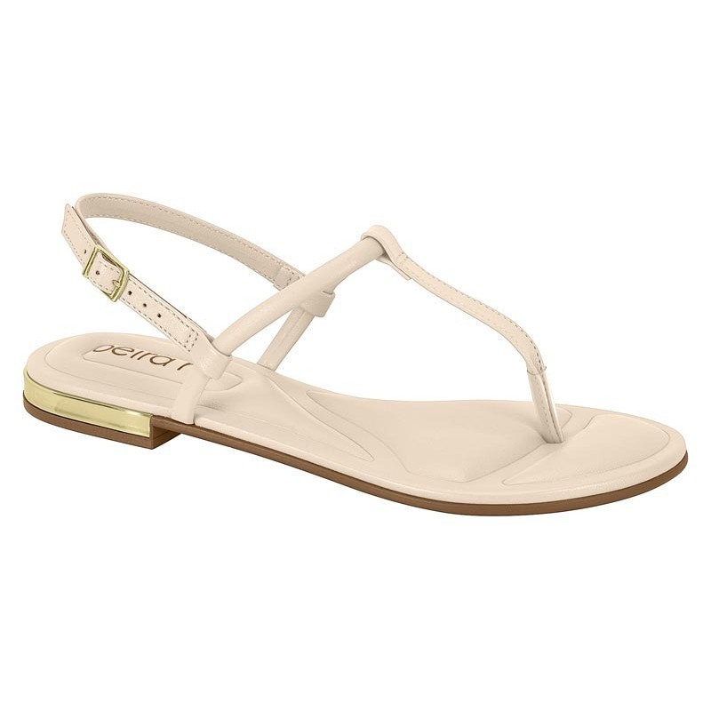 Sandália Feminina Beira Rio Rasteira Flat Básica Detalhe Dourado Conforto