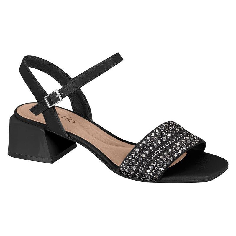 Sandália Feminina Beira Rio Salto Baixo Bloco Grosso Quadrada Strass Brilho