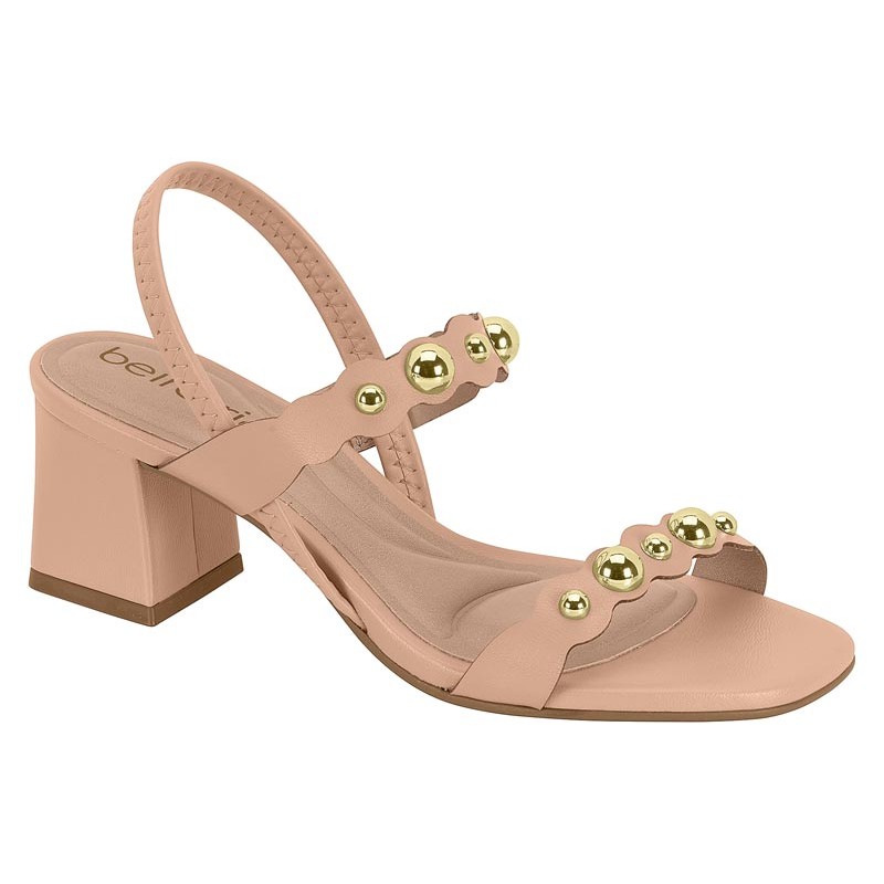 Sandália Feminina Beira Rio Salto Quadrado Detalhes Dourados Chique Festa