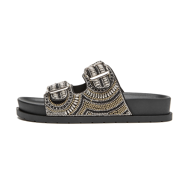 Sandália feminina Birken Couro Ecológico Papete Leve Fivela ajustável