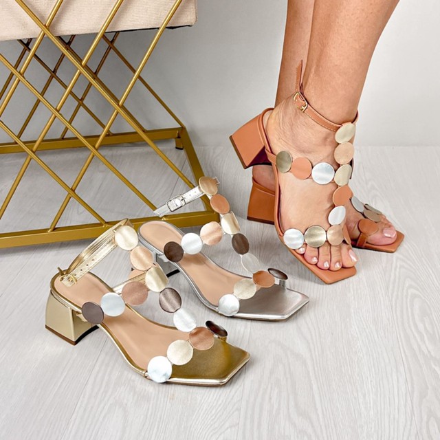 Sandália Feminina Círculos Salto Bloco 6cm Conforto Estilo Delicado Elegância Moderna