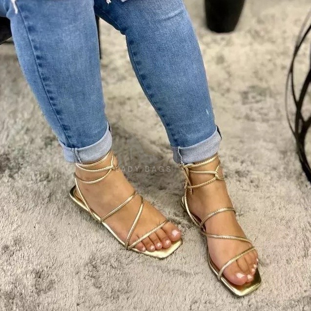 Sandália Feminina de Amarraçao Em Tiras Lançamento Rasteira Amarrar Dia a Dia (REF 3570)1