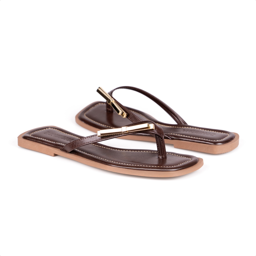 Sandália Feminina Domidona Rasteira Flat Chinelo Enfeite Metálico Bico Quadrado
