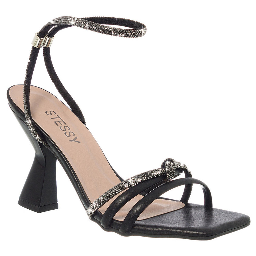 Sandália Feminina Festa Com Strass Brilho Cristal Salto Alto Geométrico Luxo Stessy Shoes Lançamento