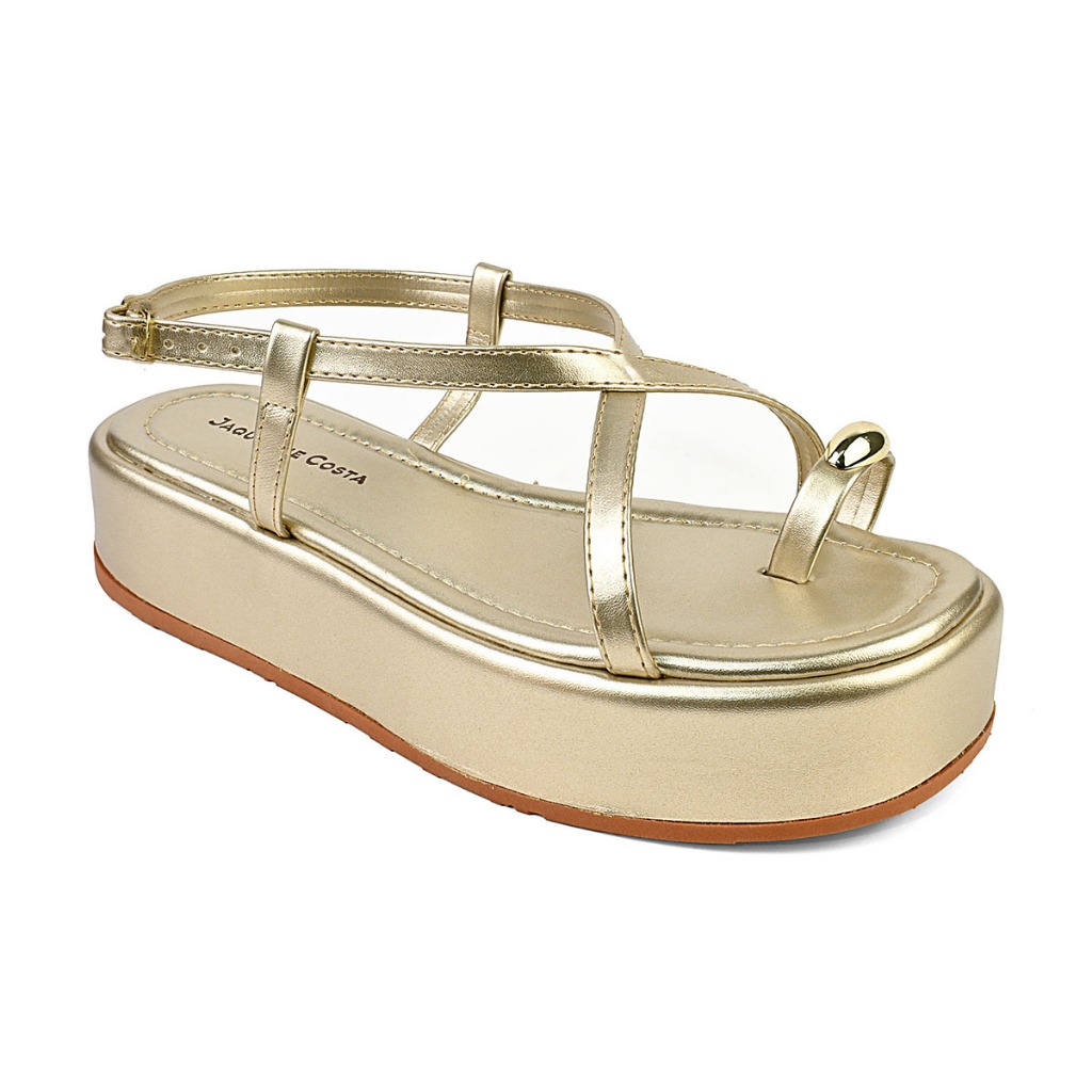 Sandália Feminina Flat Plataforma Detalhe em ABS Dourado Moda Tendência Conforto Verão Hope Shoes