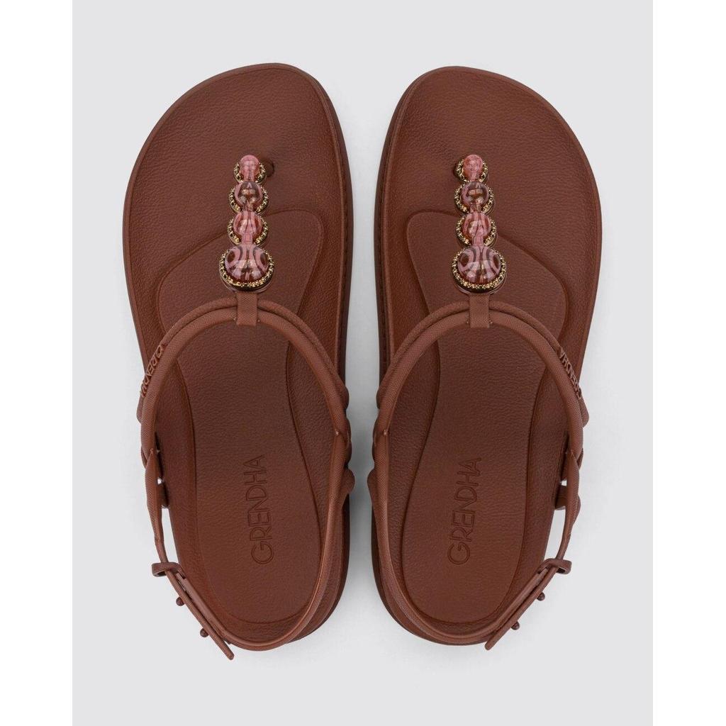 A Sandália Magnífica Grendha, com a consagrada sola anatômica Abraçar, traz elegância em cada passo. O modelo é adornado por uma sequência de pedras marmorizadas que revelam sofisticação e delicadeza. Inspirada na alta joalheria, a aplicação em metal cravejado envolve suavemente cada pedra, adicionando brilho e refinamento ao design, uma verdadeira tradução de estilo e conforto no universo Grendha. ESPECIFICAÇÕES: Delicadas tiras tubulares Detalhamento em metal cravejado Sequência de pedras marmorizadas