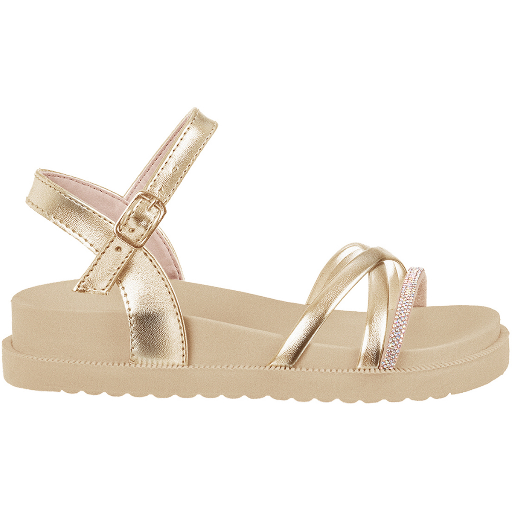 Sandália Feminina Infantil Flatform Rasteira Birken Strass Brilho Confortável Moda