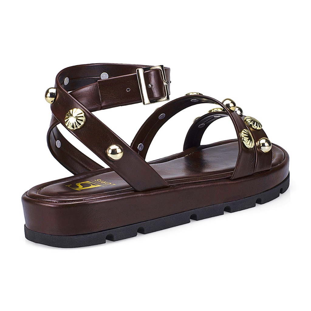 Sandália Feminina Lóris Rasteira Papete Flatform Spike Fivela Confortável 052-079