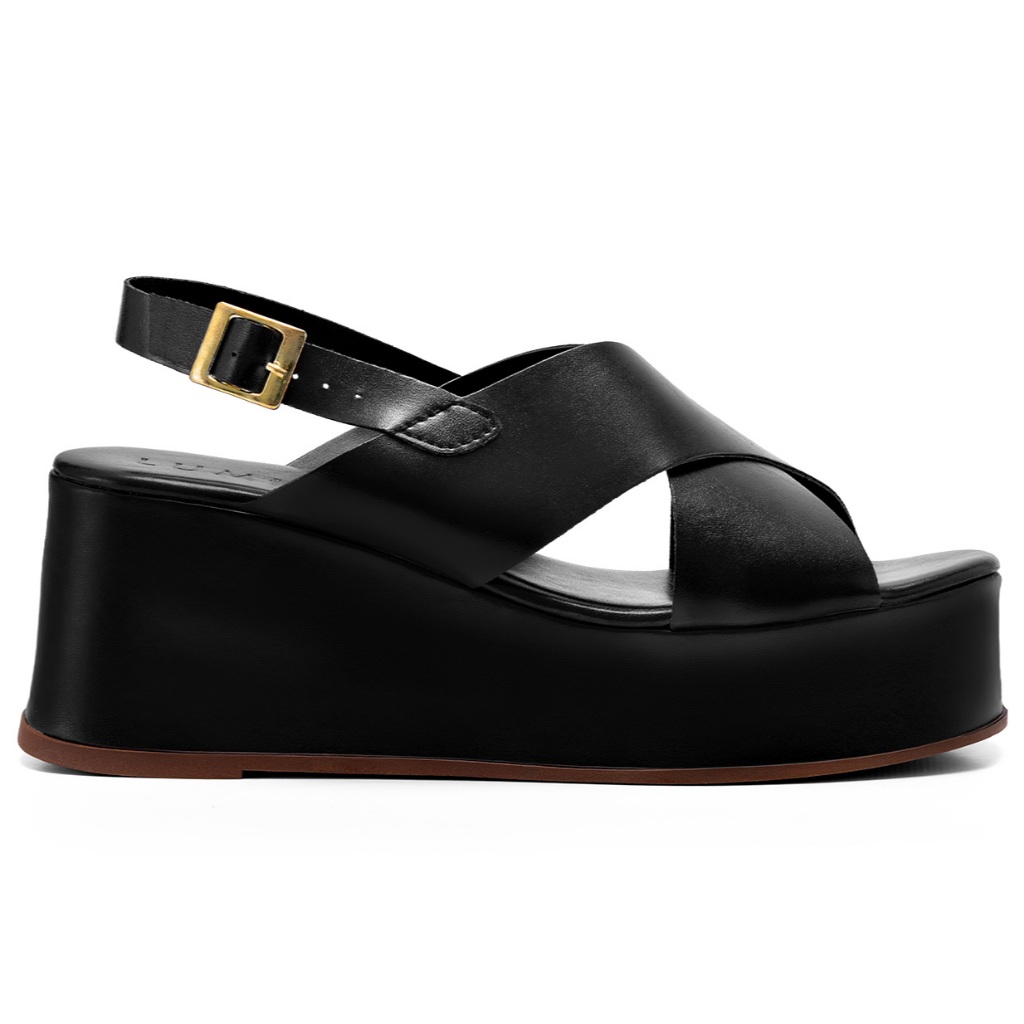 Sandália Feminina Lumiss Anabela Casual Confortável Tiras Largas Blogueira Preto