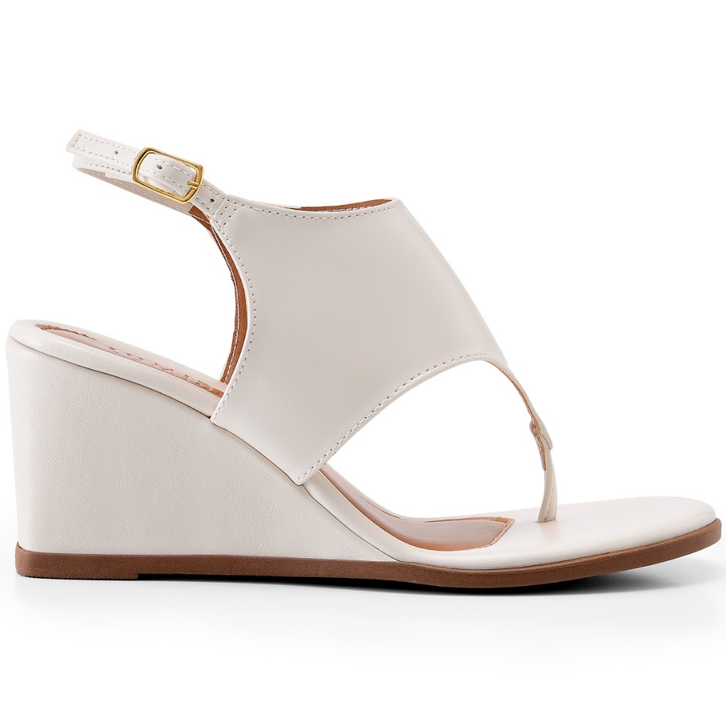 Sandália Feminina Lumiss Anabela De Dedo Confortável Bico Redondo Fivela Off White