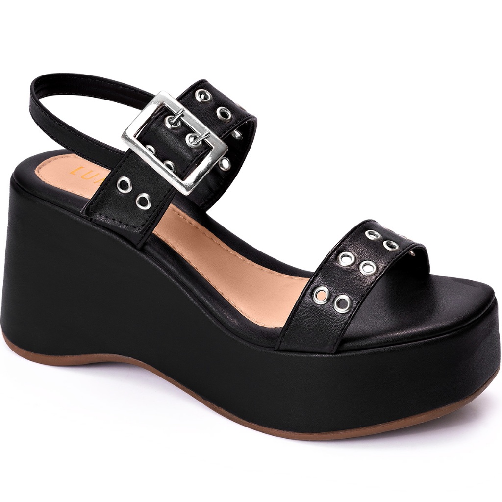 Sandália Feminina Lumiss Anabela Plataforma Confortável Fivela Ilhós