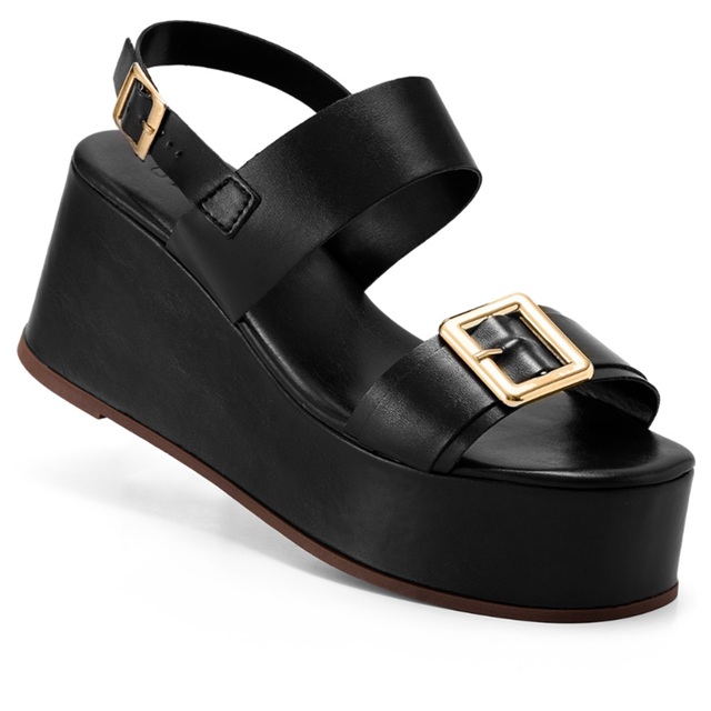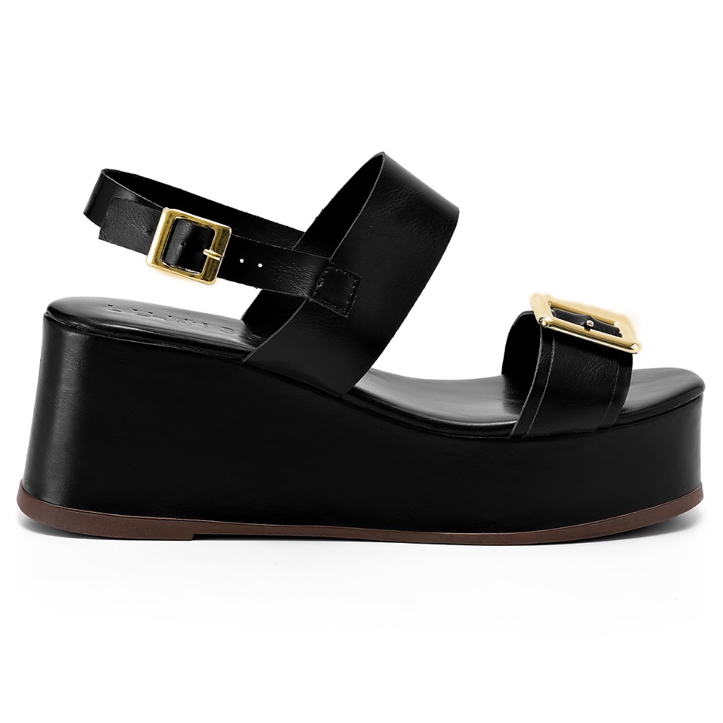 Sandália Feminina Lumiss Anabela Plataforma Confortável Fivela Preto