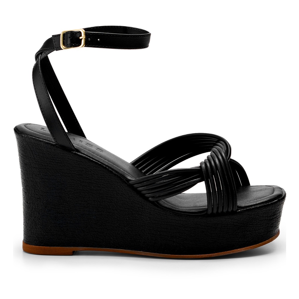 Sandália Feminina Lumiss Blogueira Tiras Nó Anabela Plataforma Confortável Preto