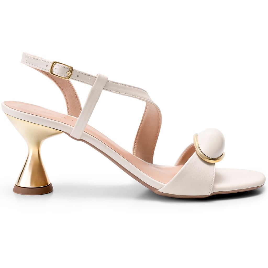Sandália Feminina Lumiss Confortável Enfeite Salto Baixo Geométrico Metalizado Off White