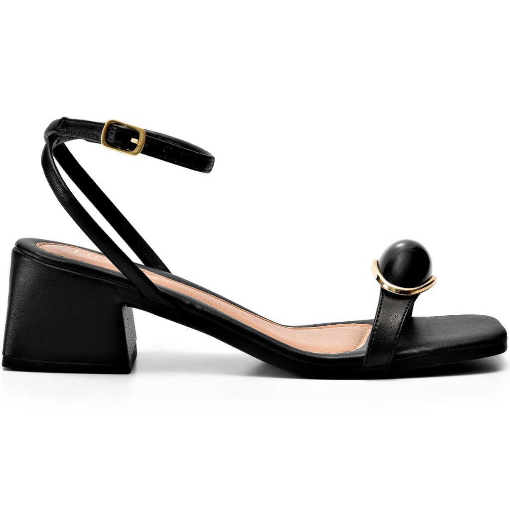 Sandália Feminina Lumiss Confortável Salto Baixo Bloco Enfeite Metalizado Blogueira Preto