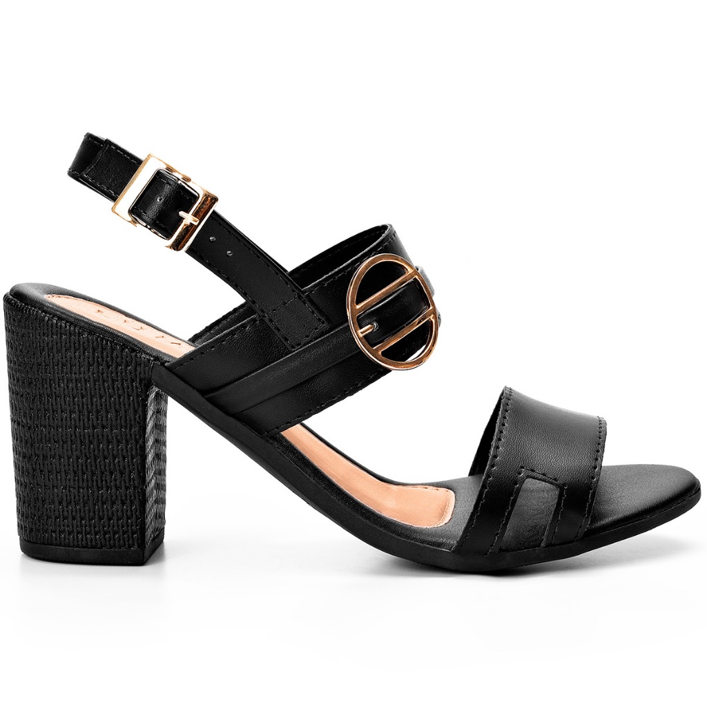 Sandália Feminina Lumiss Fivela Confortável Salto Alto Bloco Preto