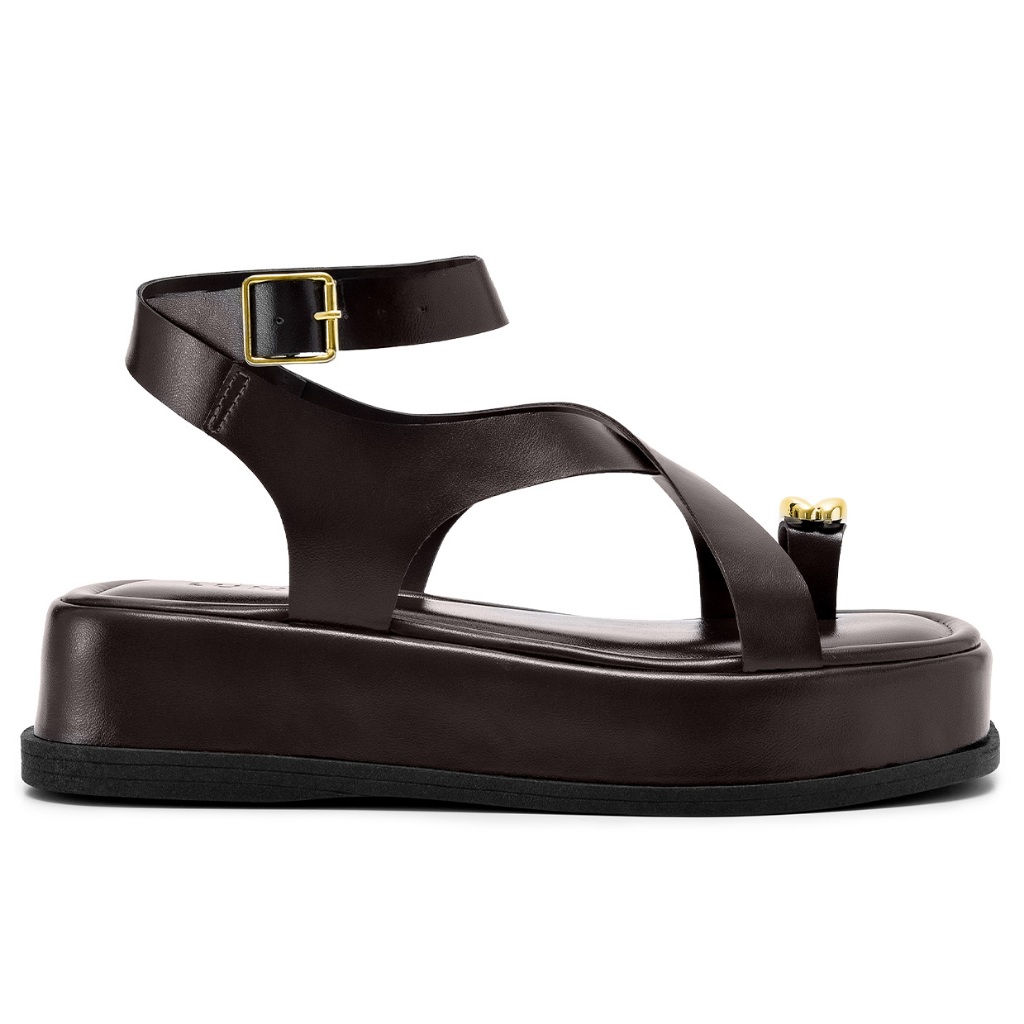 Sandália Feminina Lumiss Flatform Confortável Tiras Fivela Enfeite Metalizado Marrom