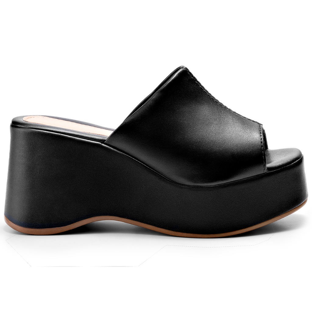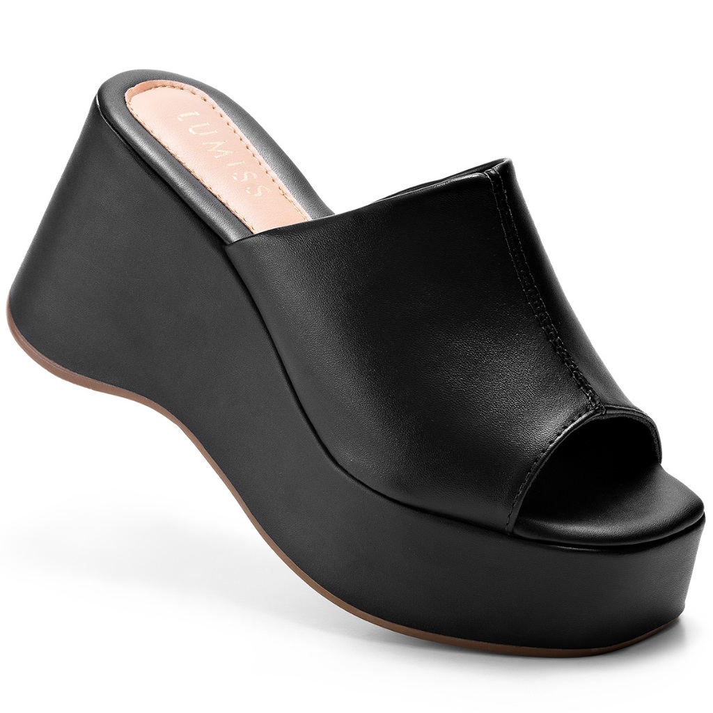 Sandália Feminina Lumiss Plataforma Tamanco Confortável Blogueira Anabela Preto
