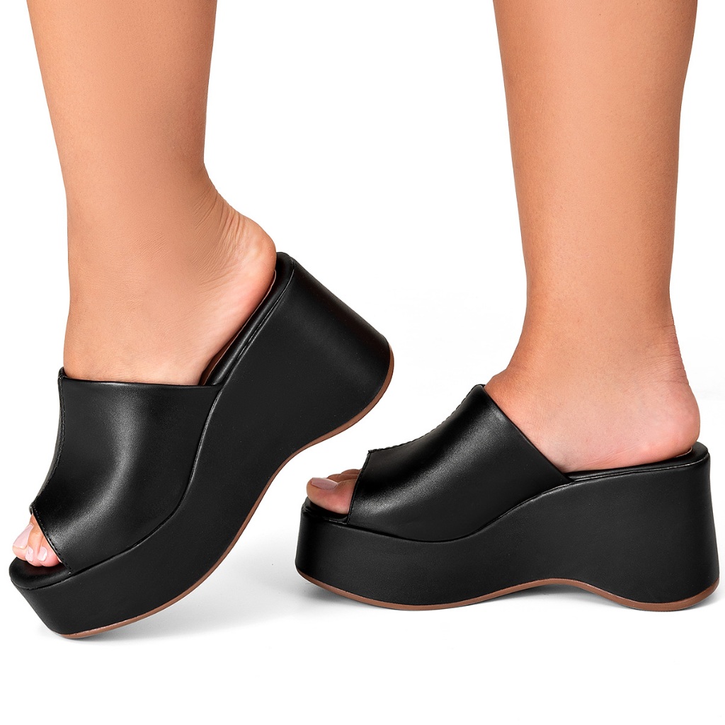 Sandália Feminina Lumiss Plataforma Tamanco Confortável Blogueira Salto Alto Grosso Anabela Fashion