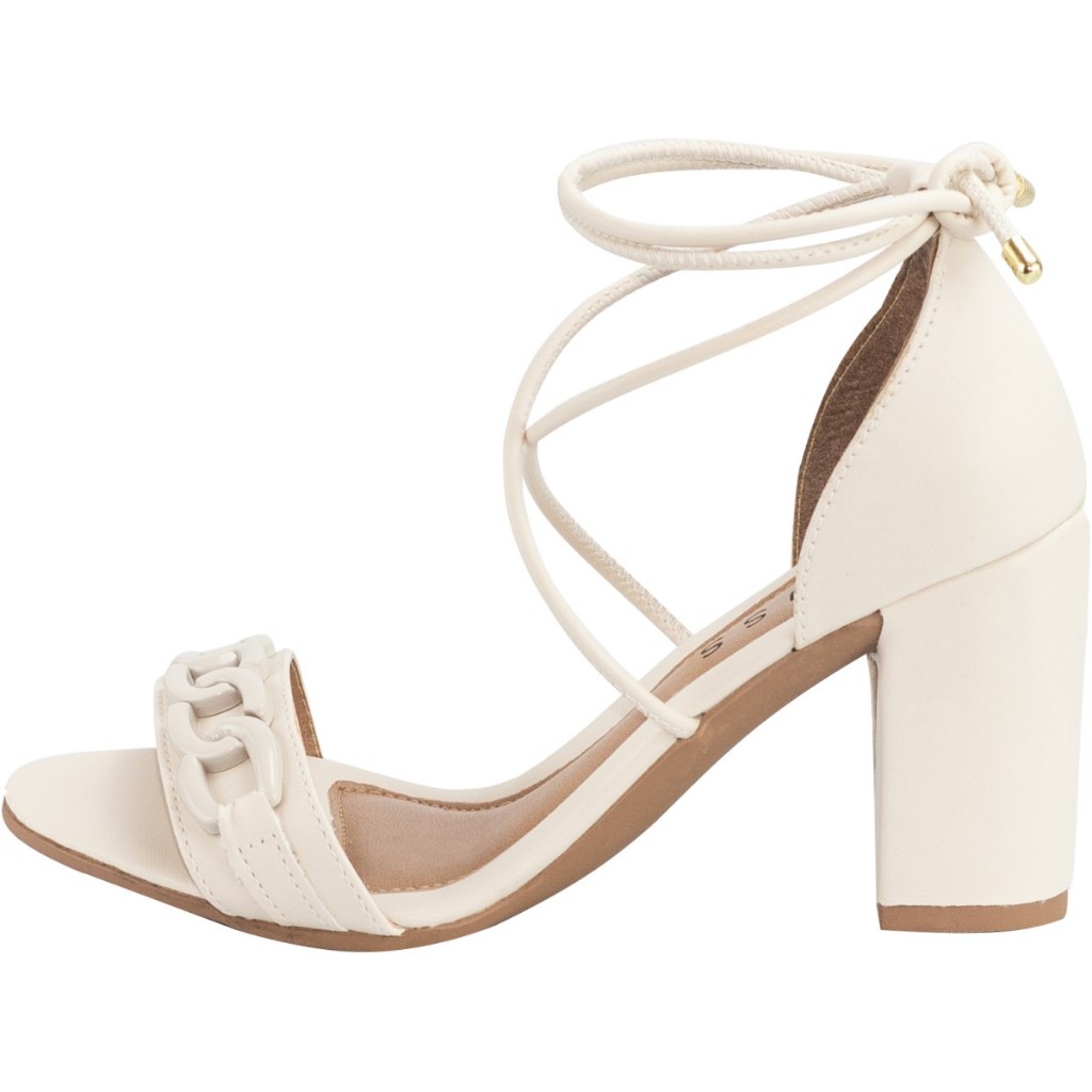 Sandália Feminina Lumiss Salto Alto Grosso Confortável Amarração Corrente Blogueira Off White