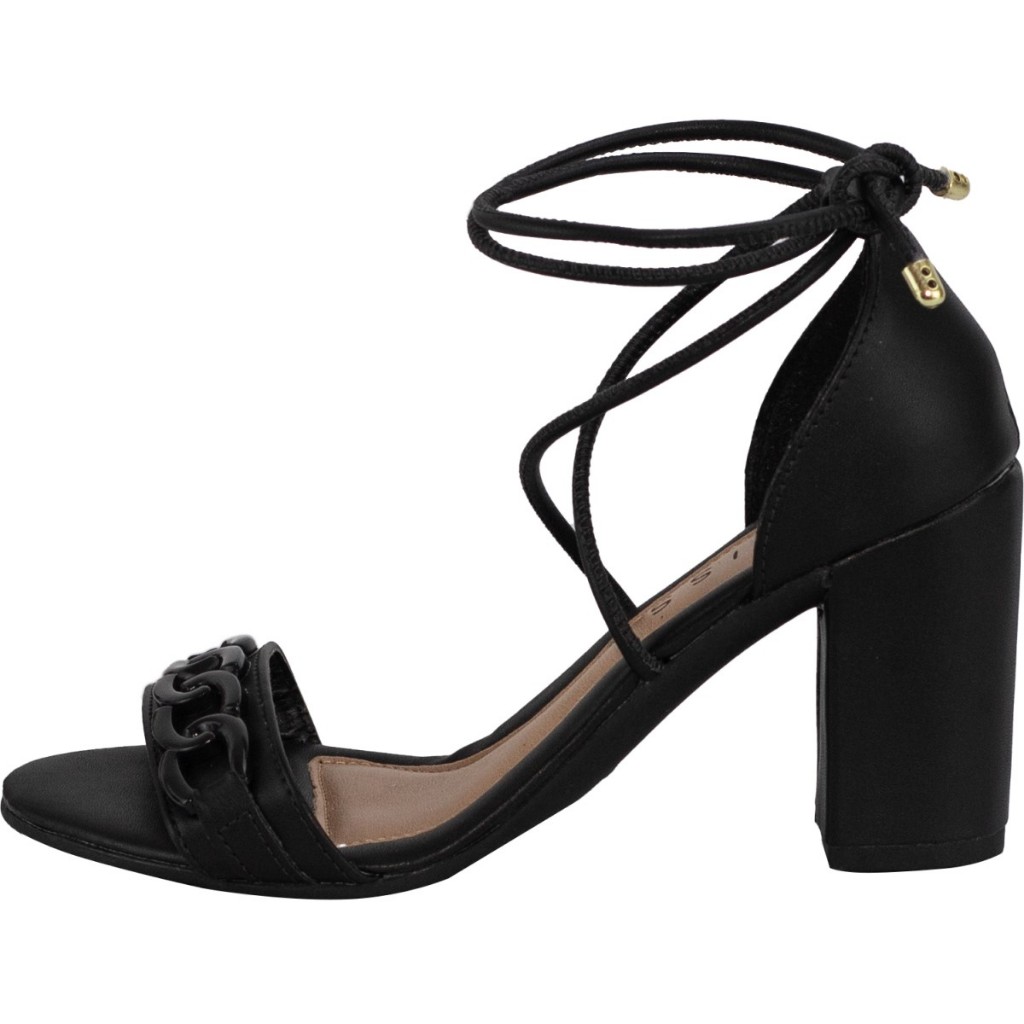 Sandália Feminina Lumiss Salto Alto Grosso Confortável Amarração Corrente Blogueira Preto