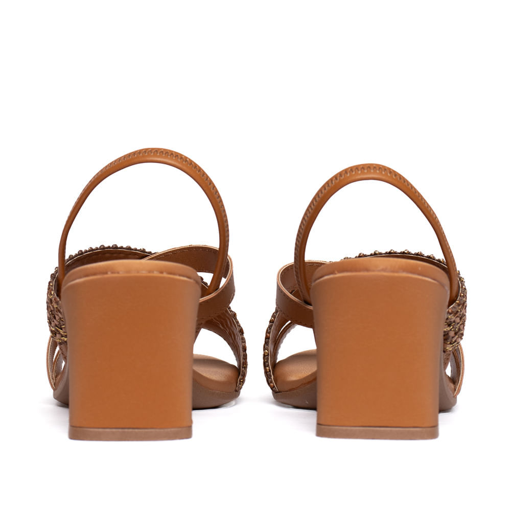 Sandália Feminina Mississipi Salto Bloco Tramado Caramelo