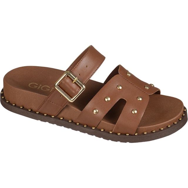 Sandália Feminina Papete Birken Slide Tira H Tachas Metalizadas Fivela Moderna GiGiL
