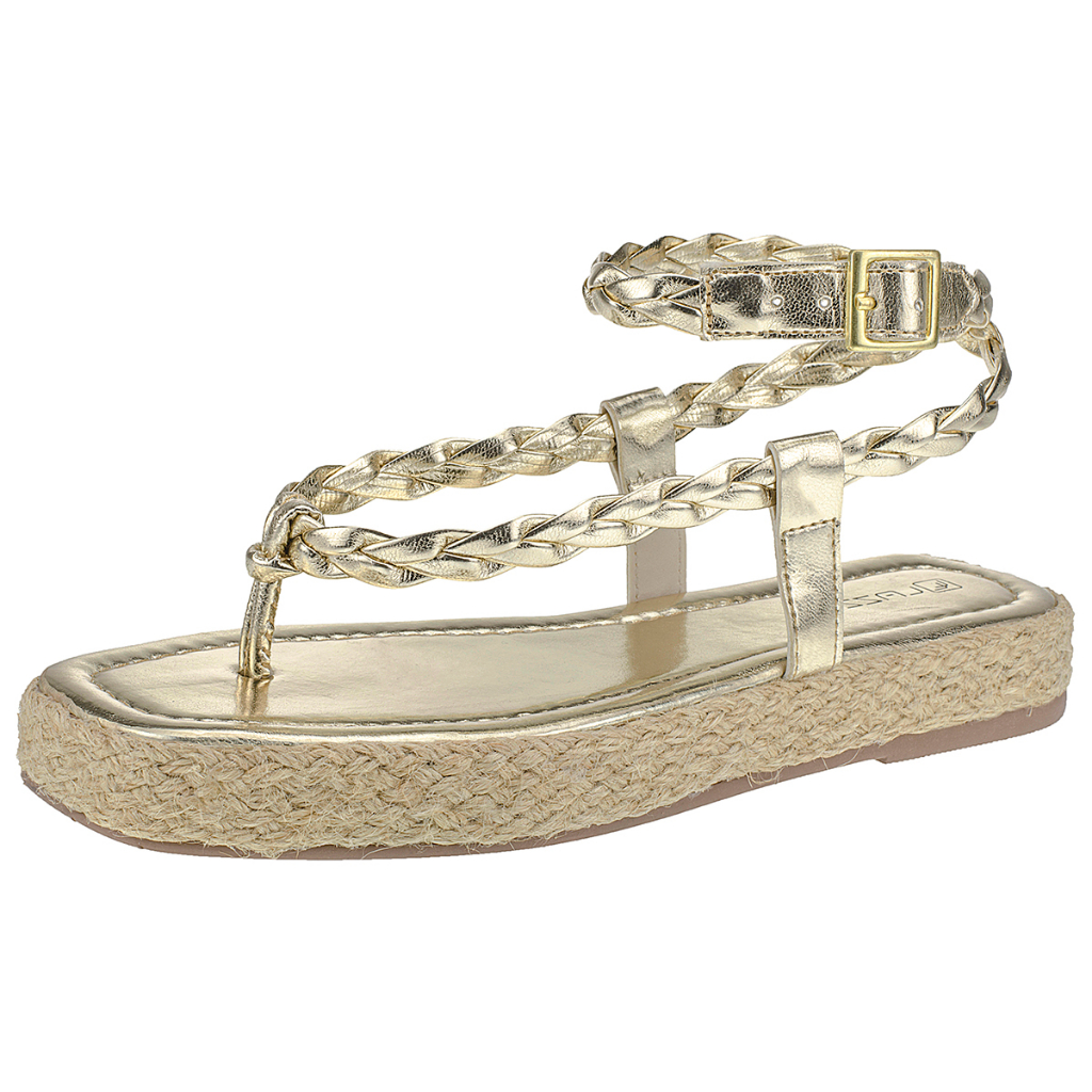 Sandália Feminina Papete Flatforma Corda Rasteira Dourada