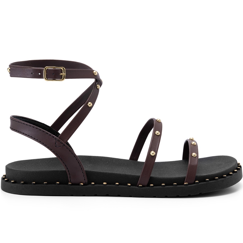 Sandália Feminina Papete Lumiss Confortável Blogueira Tachas Marrom