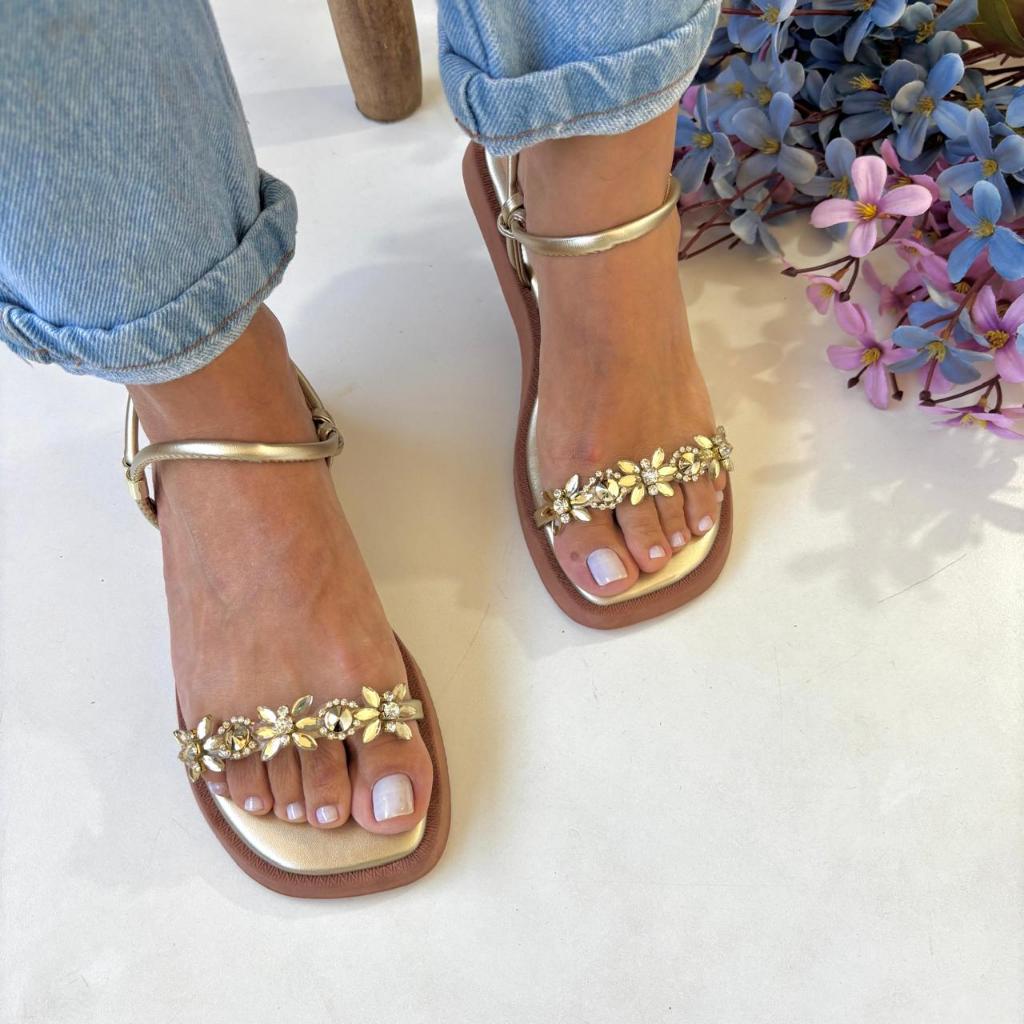 Sandália Feminina Papete Rasteira com Pedrarias ultra leve e confortável - Conforto e Elegância