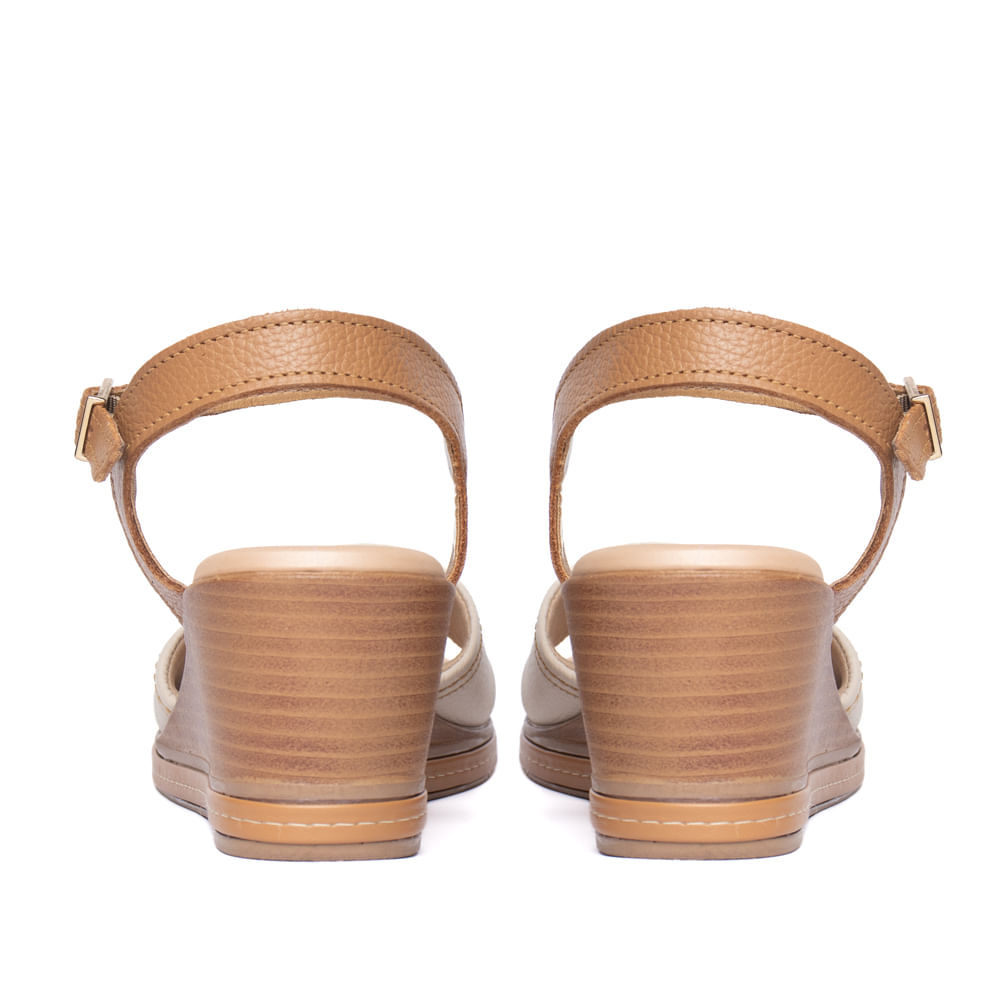 Sandália Feminina Pegada Couro Anabela Off White/Bege