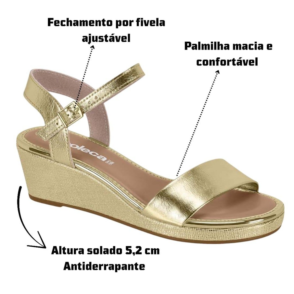 Sandalia Feminina Plataforma Media Metalizada Moleca 5512308