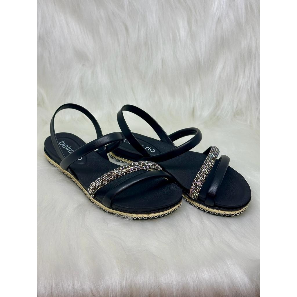 Sandália Feminina Rasteira Beira Rio Com Strass Nas Tirinhas Brilho Colorido Promocao