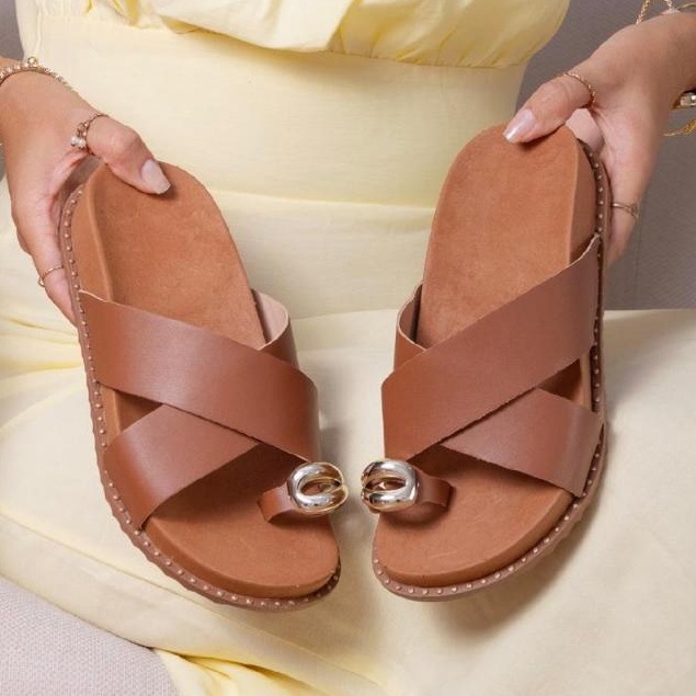 Sandália Feminina Rasteira Dedo Casual Confortável Leve Moderna Tiras Cruzadas Estilo Dia a Dia