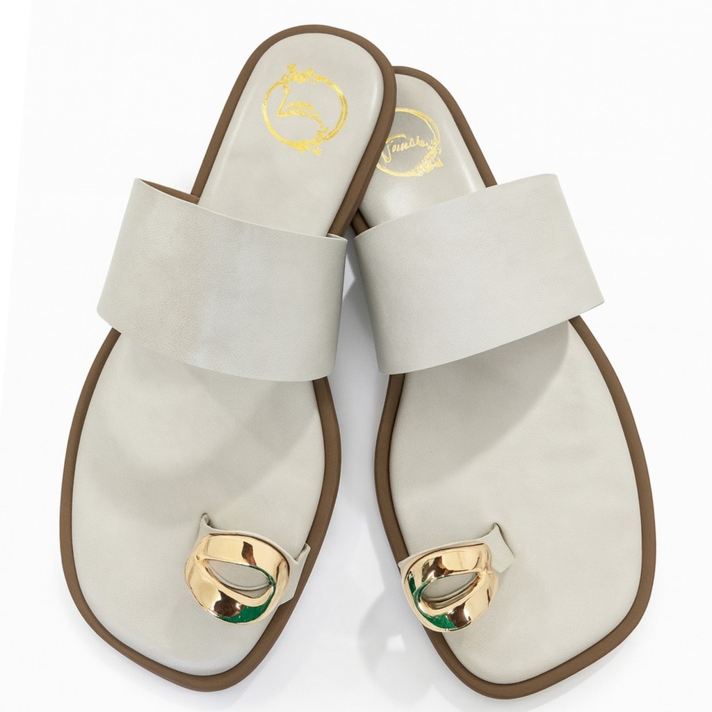 Sandália Feminina Rasteira Elegante Enfeite ABS Dourado Dedo Confortável Casual 02-06