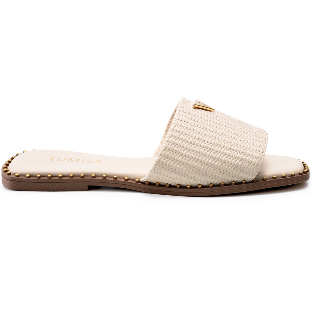 Sandália Feminina Rasteira Lumiss Bico Quadrado Confortável Juta Off White