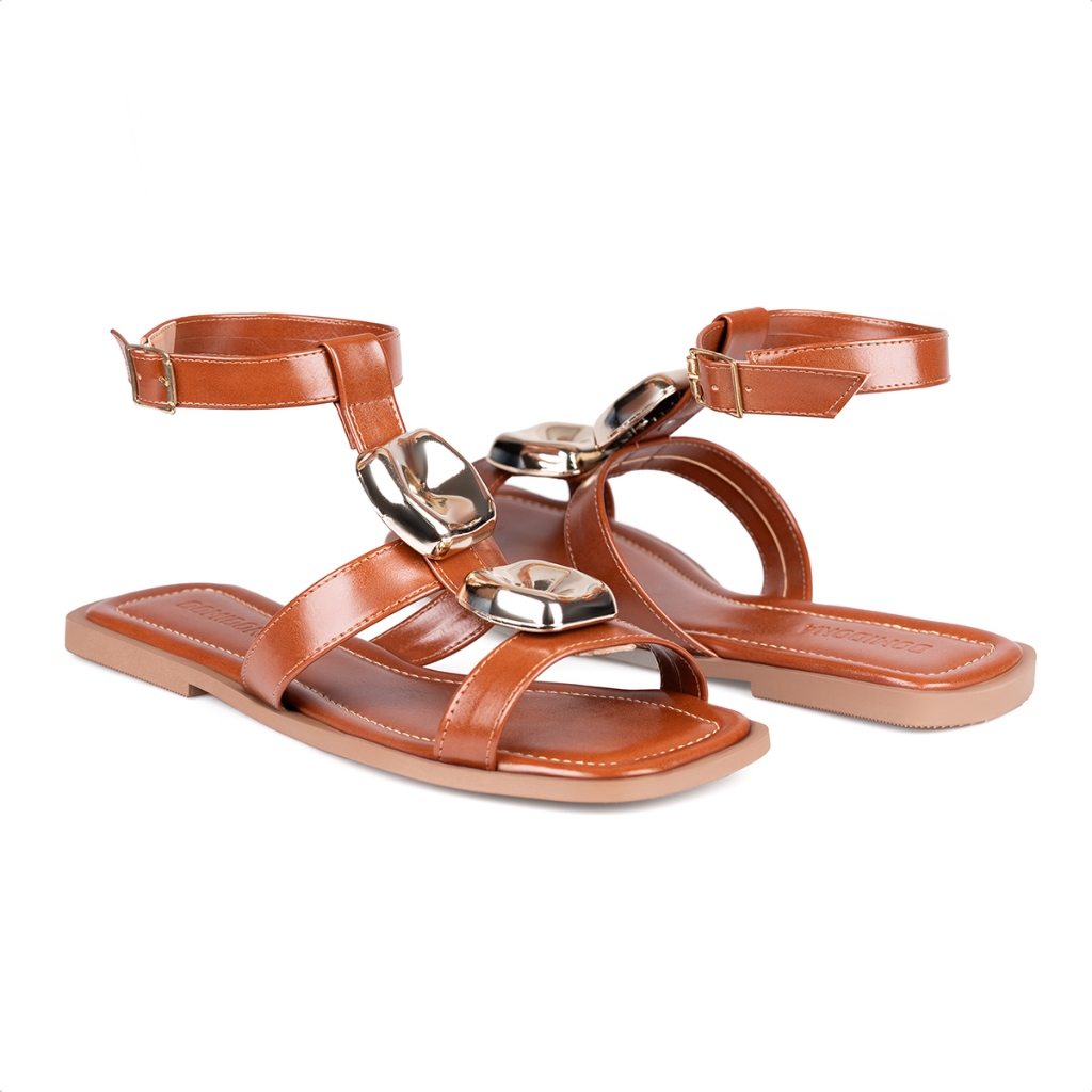 Sandália Feminina Rasteira Pedrarias Tira No Tornozelo