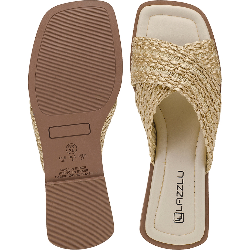 Sobre a Marca: A Marca LAZZLU chegou para oferecer a você cliente, QUALIDADE, CONFORTO ESTILO E OUSADIA. Somos uma marca de MODA, queremos trazer para você tudo que há de mais moderno e atual nesse seguimento, design, cores, materiais e tendências. Nossa meta principal é a satisfação do cliente, oferecendo excelentes produtos, com rapidez na entrega e principalmente ter um bom relacionamento com os clientes, fazendo com que eles voltem a comprar, fidelizando a marca pelo produto e serviço prestado. Sobre o Produto: Solado: PVC antiderrapante. Cabedal externo: Ráfia Material interno: Forro Napa Soft Palmilha: espuma extremamente confortável; Salto: Baixo Rasteira Fechamento: Fivela Sugestões de Uso: Você mulher merece conforto e muito estilo nos seus pés, por isso, trouxemos essa linda rasteira com "ENFEITES METALIZADOS" dando uma delicadeza ao produto, moda extremamente atualizada, combinação perfeita para deixar seu look mais fashion. Combina com vários looks, shorts, saias, calças, vestidos. Tamanhos e medidas de pés: 34 = 23 cm 35 = 23,7 cm 36 = 24,3 cm 37 = 25 cm 38 = 25,6 cm 39 = 26,3 cm Obs: Calçado com forma normal, seguir as orientações de medidas mas normalmente calça o número correto. ENVIO/ENTREGA: Enviamos nossos produtos pela frota do próprio marketplace, ou seja o transporte e entrega são feitos pelos próprios, proporcionando a vc uma entrega super segura e rápida. Nós da LAZZLU preparamos e despachamos nossos produtos dentro de 24 horas, de segunda a sexta. Todos nossos produtos vão em caixa individual e ainda embalada em envelope plástico resistente. COMO CUIDAR DO SEU LAZZLU: - Lave com produto neutro e água; - Use escova de cerdas macias; - Seque a sombra; - Não use alvejantes; - Não deixe de repouso com produto; MIX DE PRODUTOS LAZZLU: Por sermos uma marca de MODA, nosso mix de produtos é bem completo, com produtos e cores super atuais, temos: Sandálias: Rasteiras, saltos, anabelas, flatform, plataformas, papetes; Chinelos: chinelos e slides; Botas: coturno salto, coturno plataforma, coturno tratorado e botas cano médio; Tênis: Casual, Slipon, tênis meia; Sapatilha: Mule, sapatilha, salomé e scarpins. Ah!!! Mais um detalhe, VC sempre vai poder contar com alguém da EQUIPE LAZZLU para te ajudar. Esperamos que vc tenha uma experiência MARAVILHOSA conosco. Obrigada.