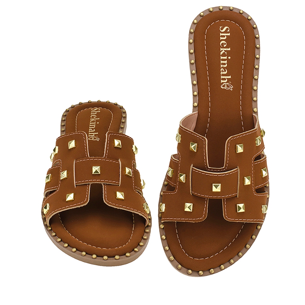 Sandália Feminina Rasteira Rasteirinha Shekinah Enfeite Spike Sola Cravos Tachas Moda