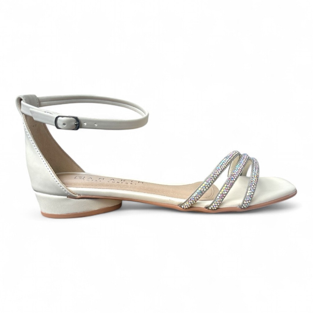 Sandália Feminina Rasteira Tiras Strass Off White Ramarim 2423208-6
