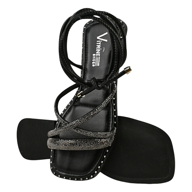 sandália feminina rasteirinha Amarração Brilho Strass Vitrine shoes