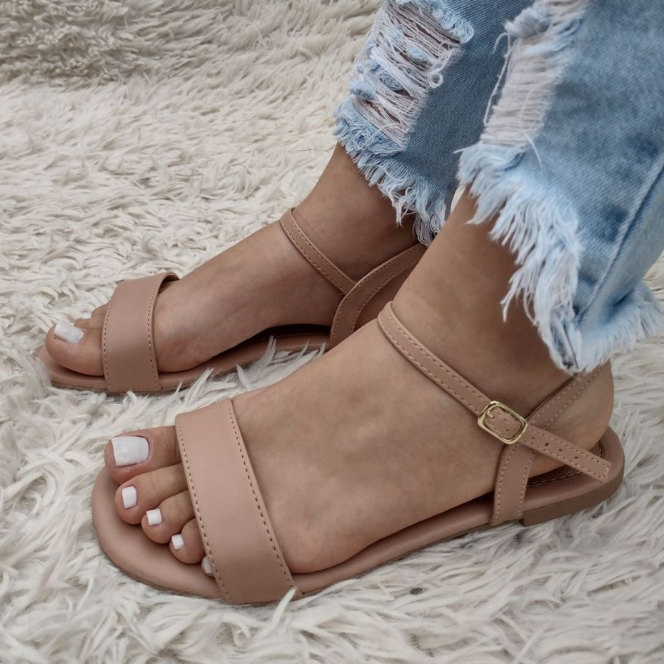 Sandália Feminina Rasteirinha Básica Moda Nude Casual Fivela