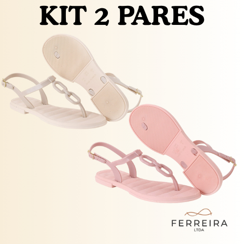 Sandalia Feminina Rasteirinha Corrente Kit 2 Pares Leve e Confortavel Super KIT2.SAND.CORRENTE