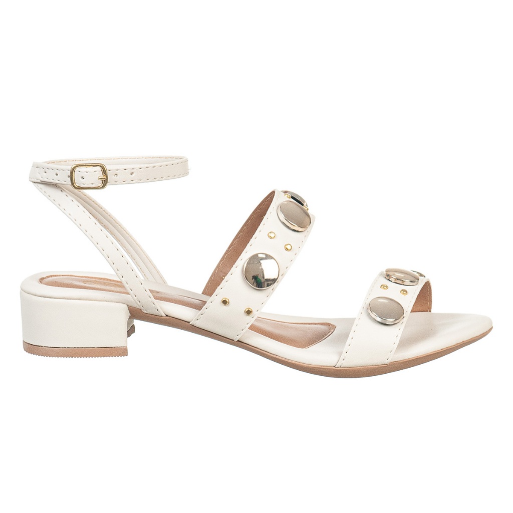 Sandália Feminina Saltinho Baixo Quadrado Moderna Com Medalhas Moda