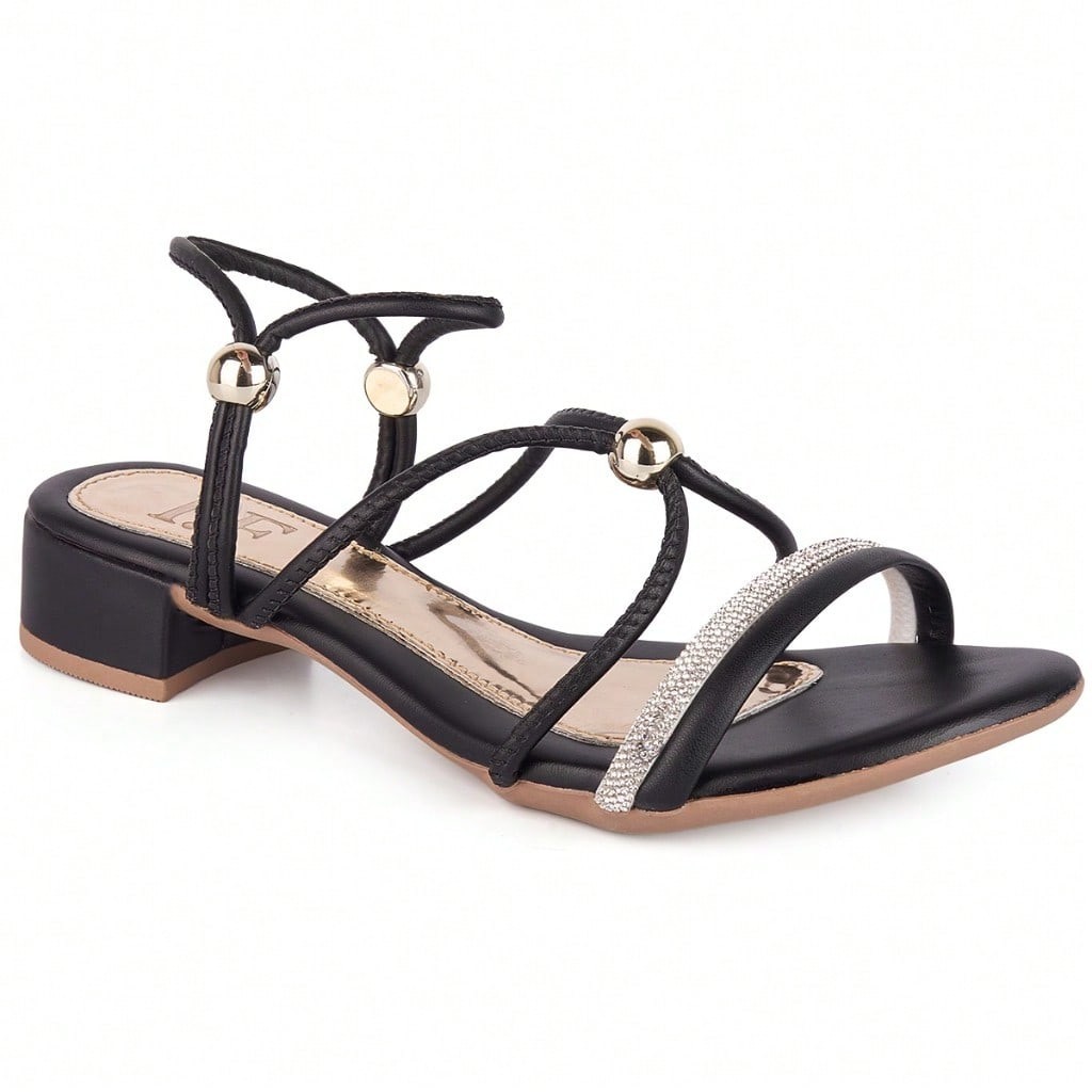 Sandália Feminina Salto Baixo Detalhe Tira Brilhante Strass Super Ajustável Conforto Dia a Dia