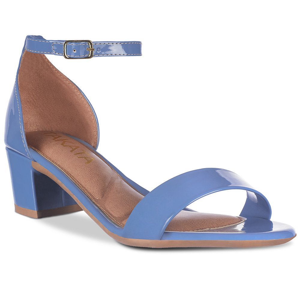 Sandália Feminina Salto Baixo Grosso Confortável em Verniz Elegante Verão