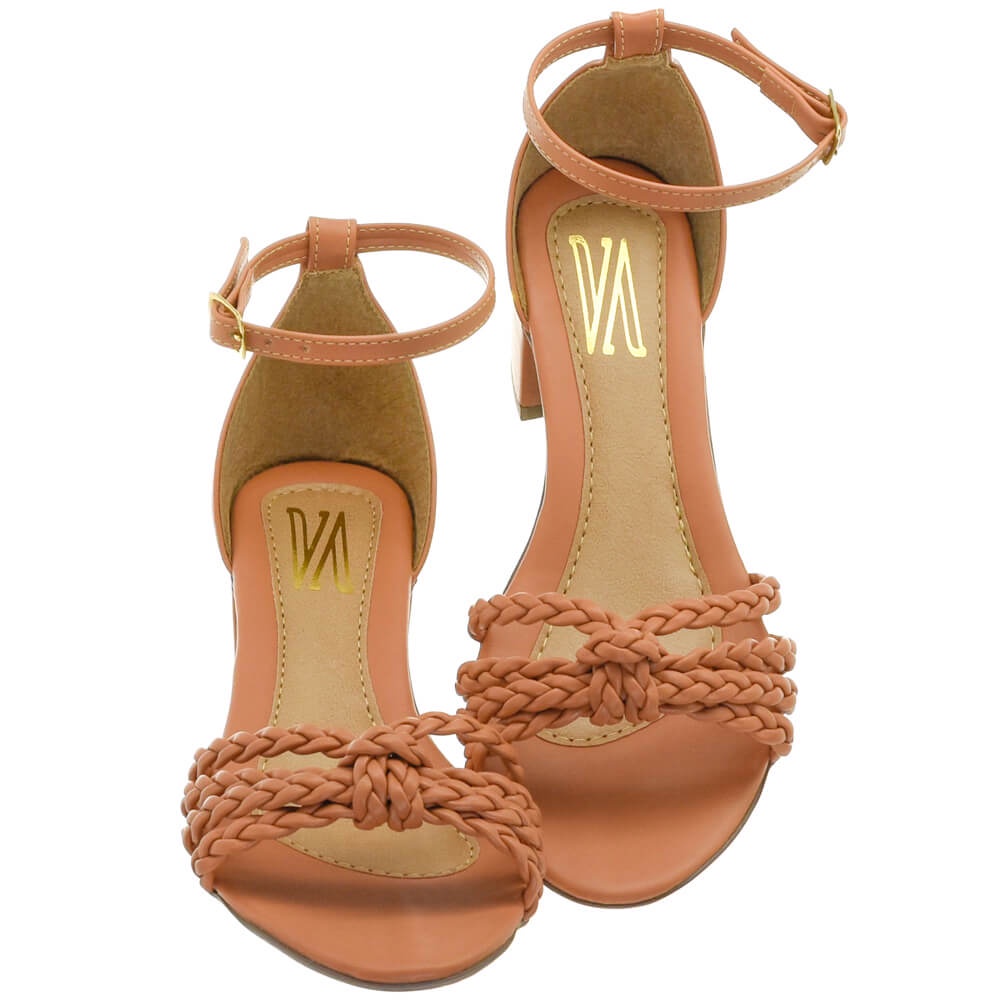 Sandália Feminina Salto Baixo Grosso de Trança confortável Moda Evangélica Via Angel 33.03-1.