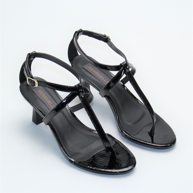 Sandalia Feminina Salto Baixo Taça Dedo Tiras Verniz Traseiro Confortável Macia Moda Estilo Social