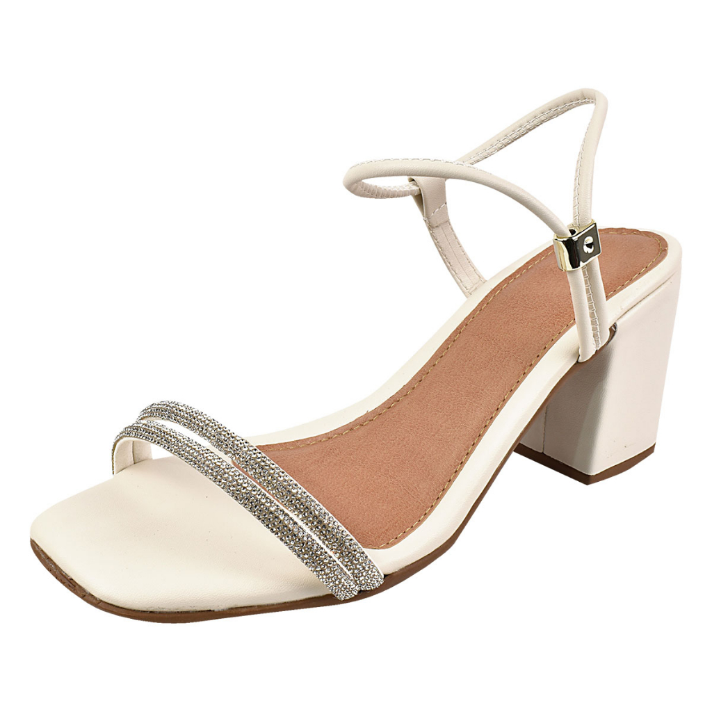 SANDALIA FEMININA SALTO BLOCO 7,5 TIRA STRAZ CALÇE FACIL CONFORT